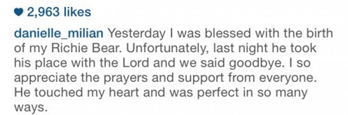 Despite her determination, Richie wasn’t able to survive outside the womb. Danielle shared a mournful message to Instagram letting everyone know her son wasn’t able to beat the odds. Truly sad news.